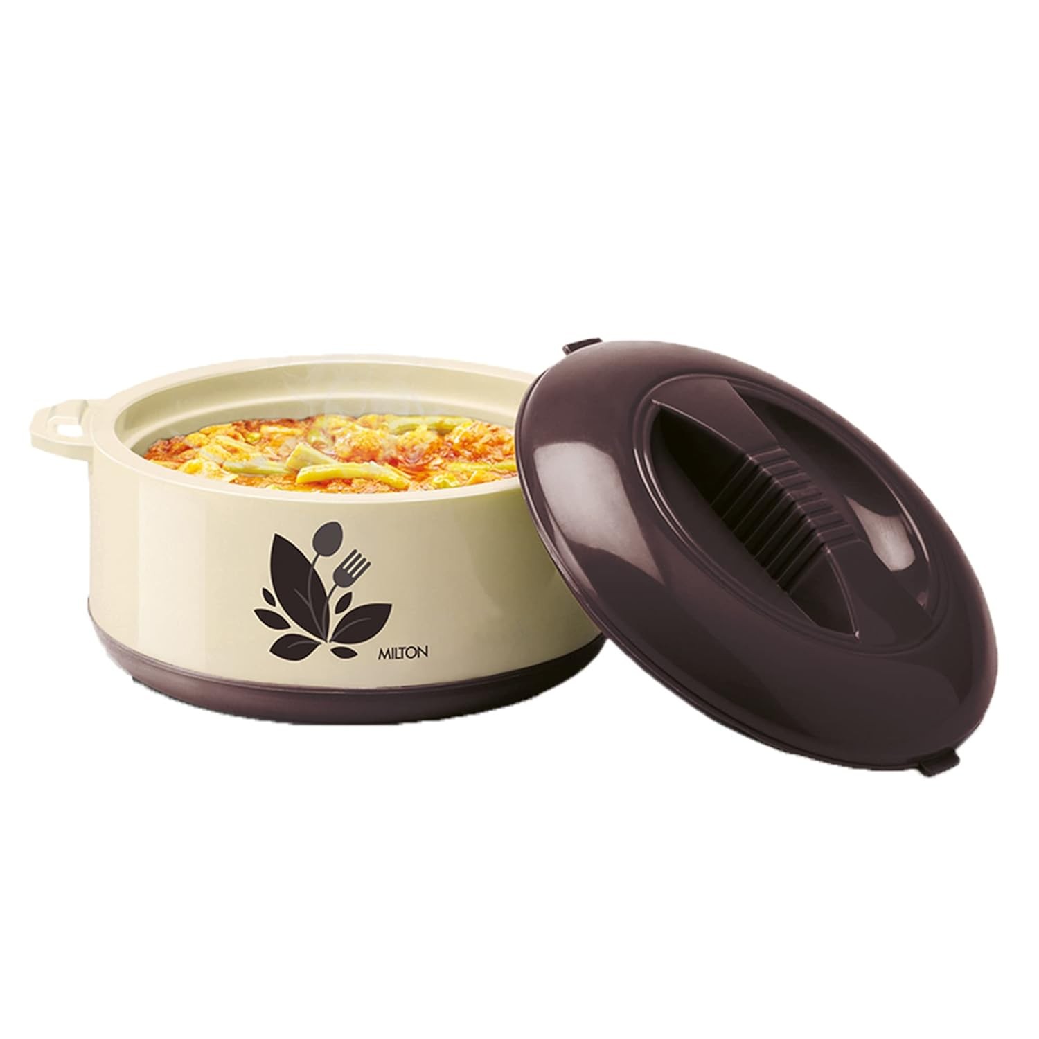 • Contemporary dual-tone outer finish with attractive graphics make mealtimes fun and exciting. Easy to carry from kitchen to dining table with an eye catching design featuring inner stainless steel