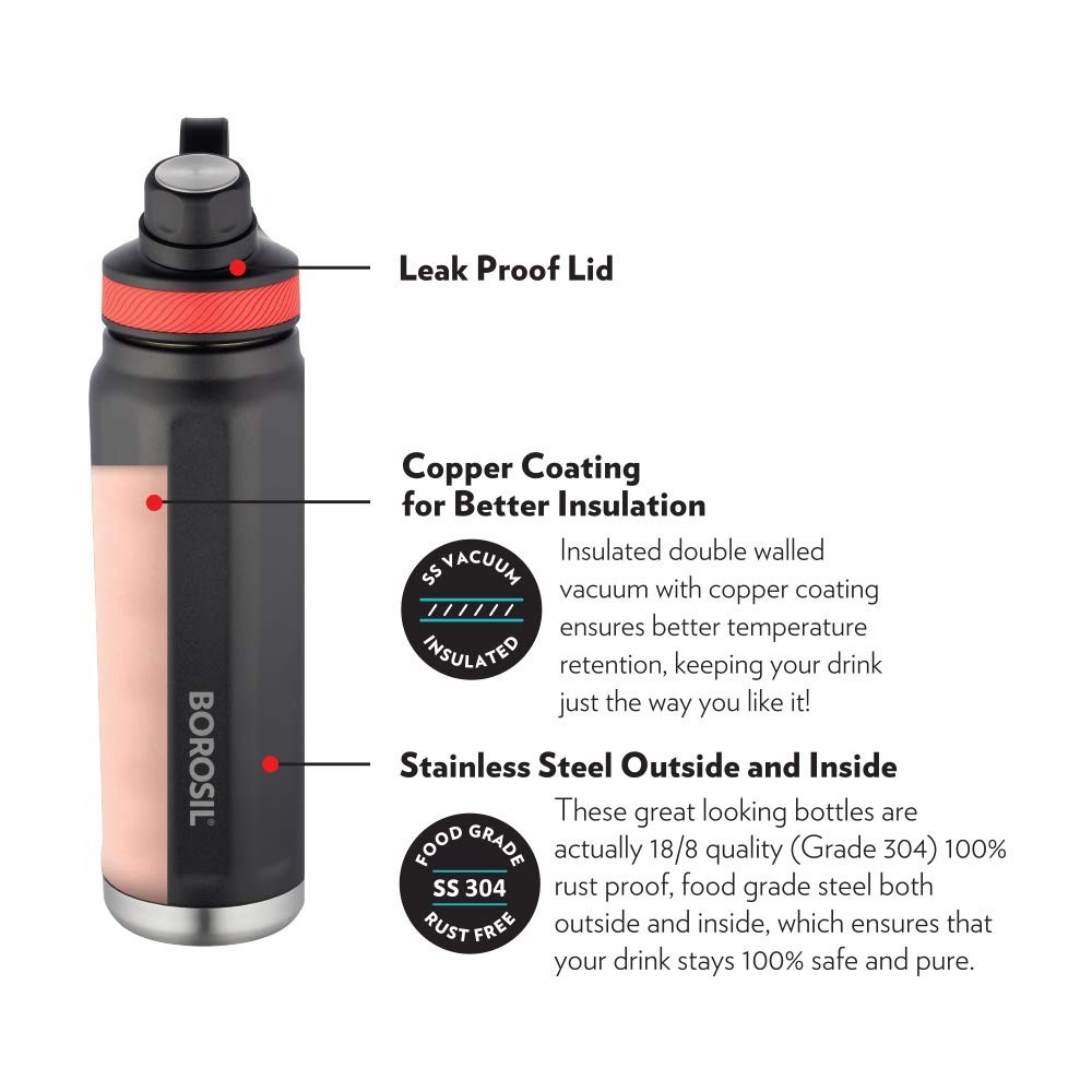 • All Borosil Hydra Bottles Stainless Steel Bottles come with a one year warranty against manufacturing defects